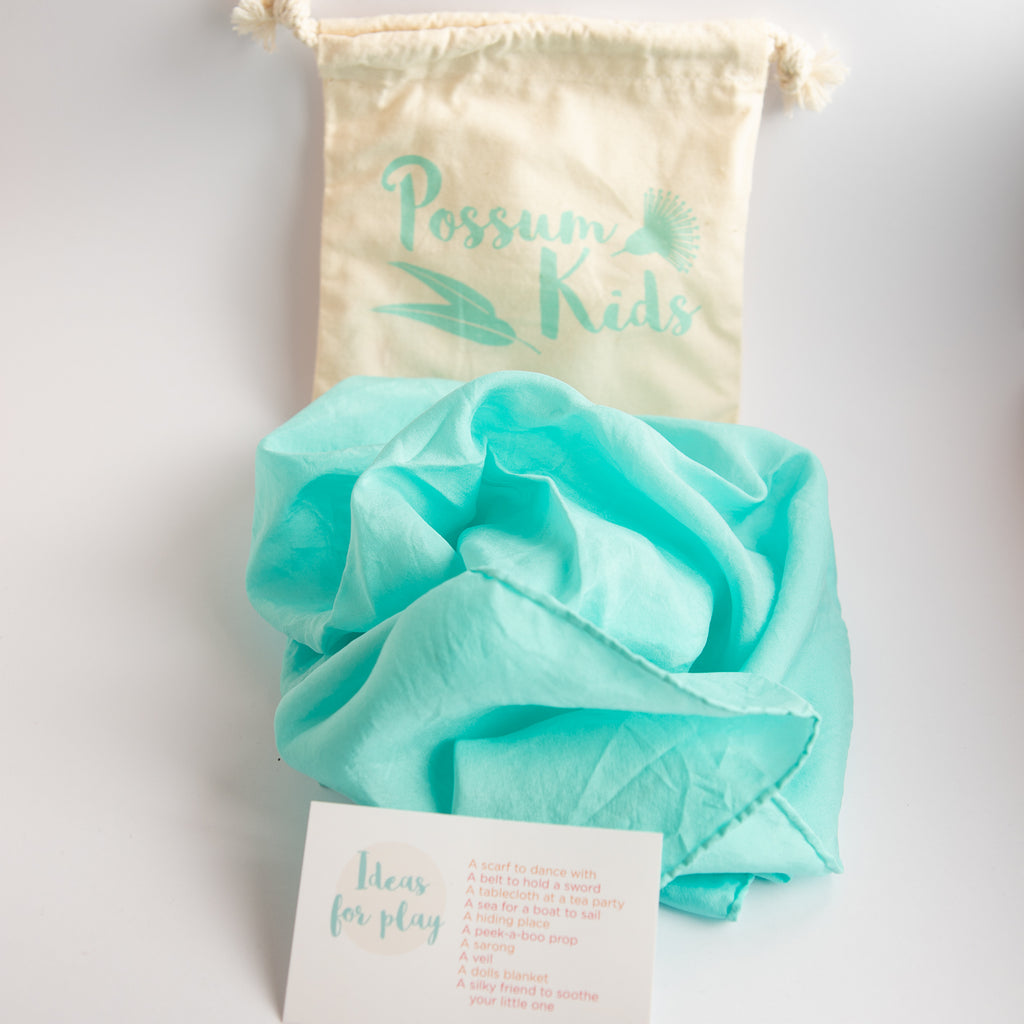- 1 Playsilk handcrafted by Possum Kids : not a random scarf...Silk is a natural fibre that is lightweight and durable and feels that little bit special and luxurious. this playsilk is a versatile toy for children that encourages imaginative play. They can be used as a scarf to dance with, a belt to hold a sword, a tablecloth at a tea party, a dolls blanket or just a silky friend to soothe your little one. You'll be surprised at the games your little ones come up with.